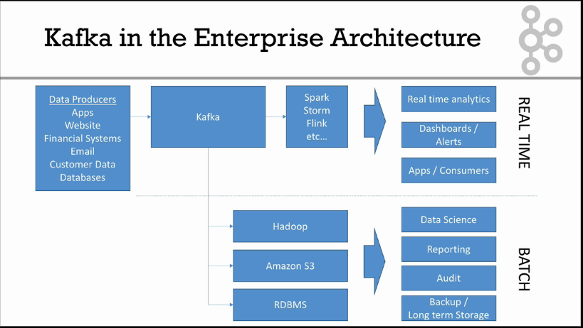- They only have to specify the topic name and one broker to connect to, and Kafka will automatically take care of routing the data to the right brokers